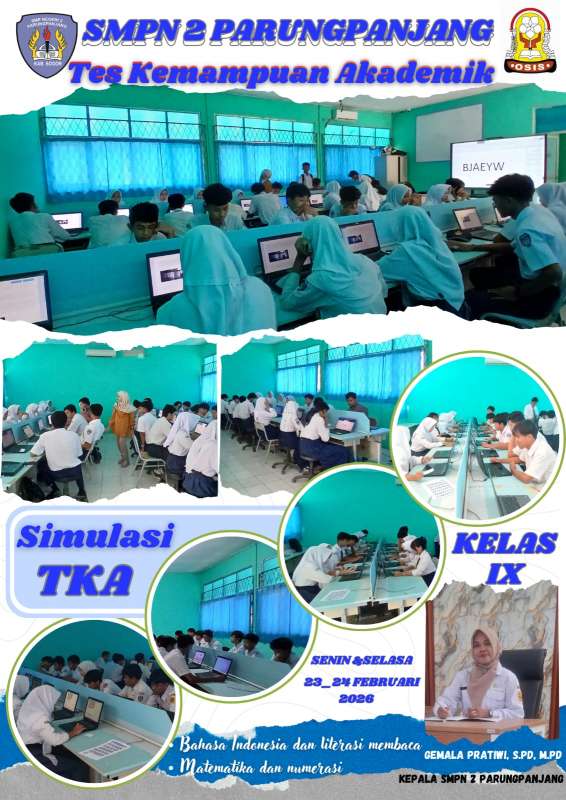 SMPN 2 Parungpanjang Menegikuti Simulasi TKA 2026 dengan jumlah siswa 202 dengan mode Full Online (Daring) pada hari pertama sempat menalami kendala pada server pusat karena adanya pemeliharaan, hari kedua dan ke tiga berjalan dengan lancar.